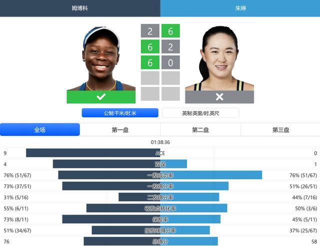 女单方面,朱琳6-2拿下第一盘,让球迷看到中国金花赛季初的竞技状态非常好。但对面是去年最好的WTA新人,即使第一盘失败,也能及时调整。最后,加拿大新星姆博科连续两场比赛,率先拿下第一分。