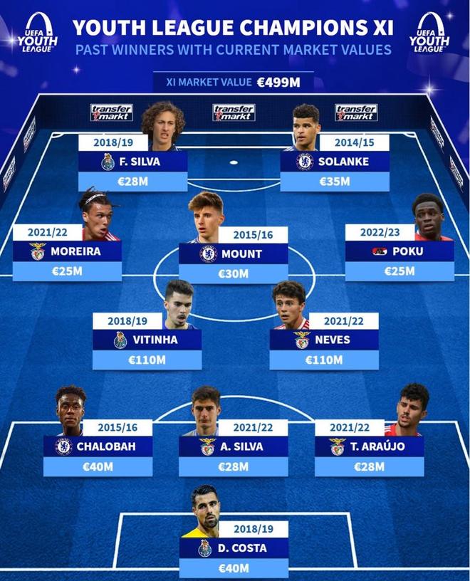 北京时间4月24日,在皇家马德里U19赢得本赛季欧洲青年联赛冠军后,德国转会统计了11人赢得欧洲青年联赛冠军,巴黎中场双星维蒂尼亚和若昂内维斯领先,芒特在名单上。